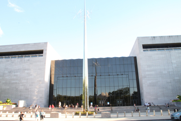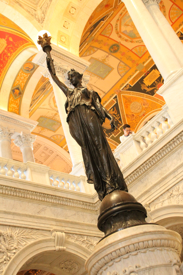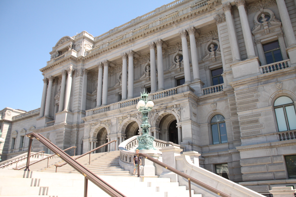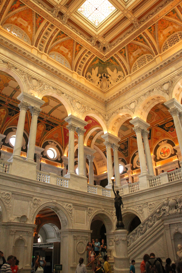 After this we walked the tunnel to see the Library of Congress. A truly impressive and elaborately decorated building. The Thomas Jefferson Library was amazing – each book catalogued with a ribbon saying whether it was the original book, a book the collection had replaced after the original lost in the fire or by a book jacket inferring that the book was burnt and they haven’t yet found a replacement. There were also exhibitions on Persian Books and Maps that catalogued the birth of the US.