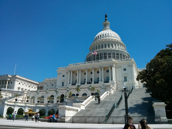 From the Library, we walked back across and walked around the outside of the Capitol. The skies were blue so the dome looked awesome stood out against the sky.