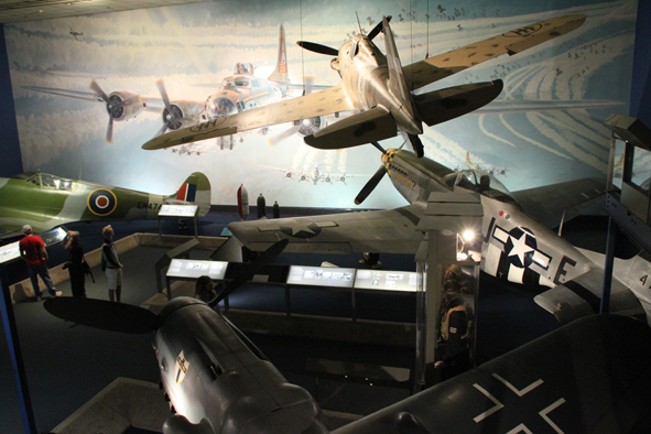 After lunch we watched an IMAX 3D film on D-Day which was really well done, especially for the younger members in the audience and then we spent the rest of the day wandering around the huge exhibition. There were several rooms allocated to the Apollo missions and the space race, two about the planes in WW1 & 2 – impressive collection of planes from WW2 – a Spitfire, Messerschmitt and Zero plus various US planes. They also had the planes the Wright Brothers and Amelia Earhart flew in. An impressive collection of rockets and rocket powered missiles such as the V2 and Tomahawk too.