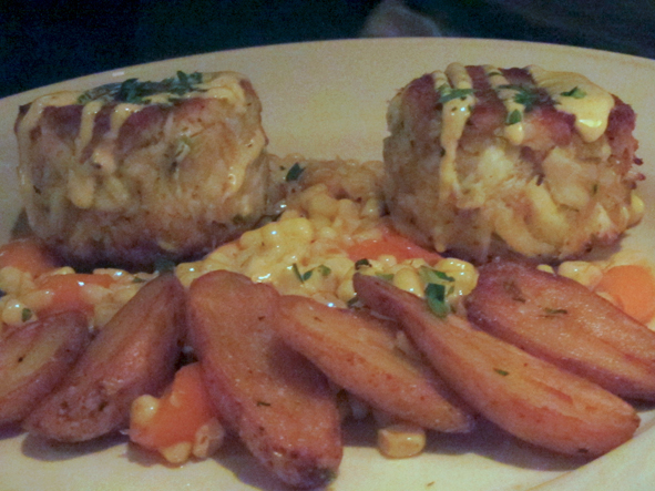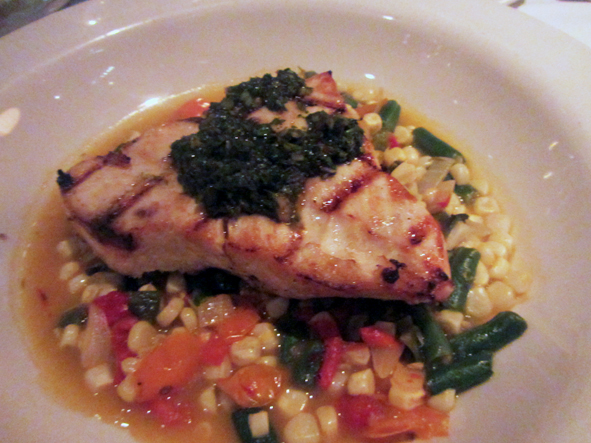 A little wait in the bar area before we got a table. Callum choose the ribs off the starters menu for his main meal, I went for Swordfish and Jon the Crab Cakes. Ours was served on a bed of vegetables (carrots, onions, sweetcorn, green beans) in a sauce that was really nice – even Jon enjoyed it!. Jon also chose a really nice bottle of Sonomo Chardonnay to complement the food.