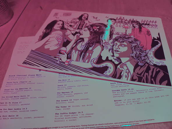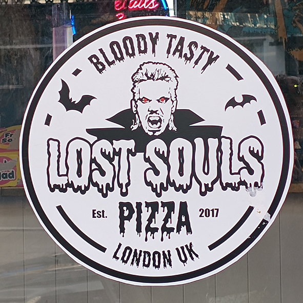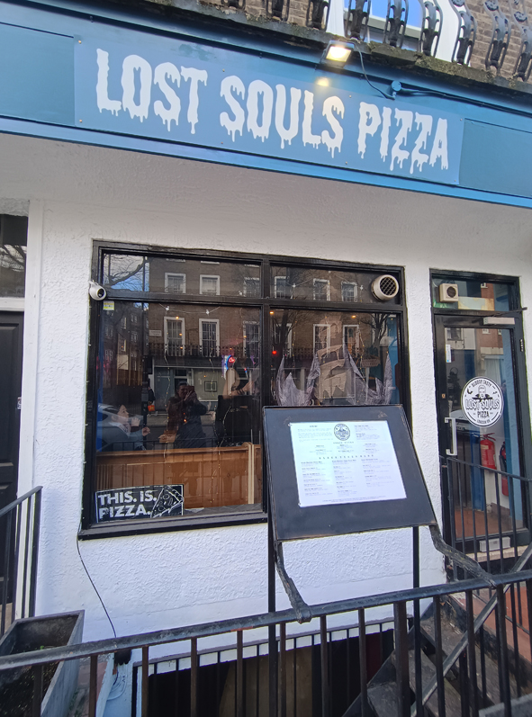 We’d all worked up an appetite so we walked south towards Camden. As we were in the area, we’d decided to try out Lost Souls Pizza … inspired by the film The Lost Boys. Jon loved the film and was won over after reading the reviews about the charcoal pizza!