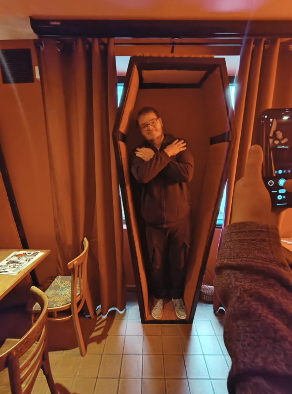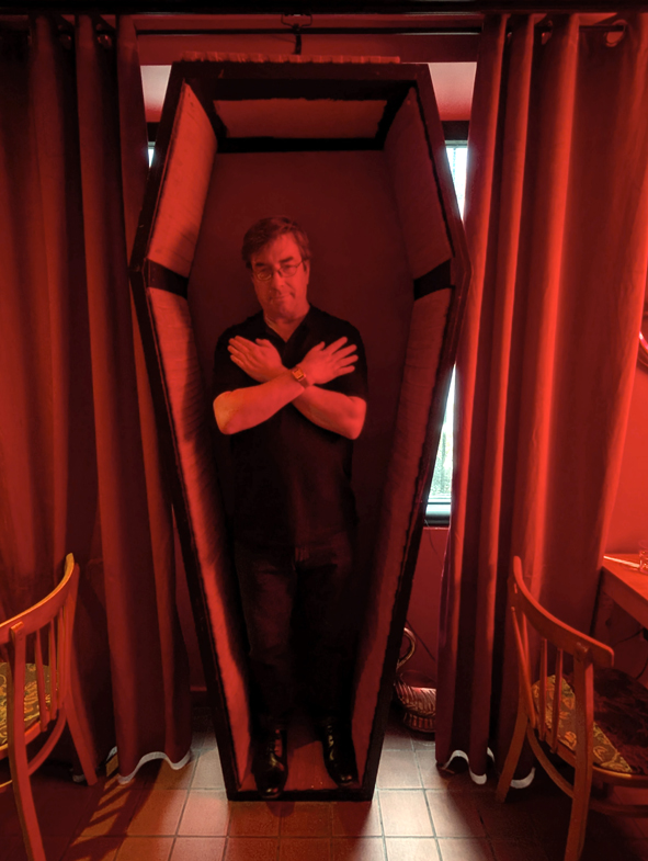 Lots of Lost Boys inspired theming … complete with a coffin! The basement was lit by red light which is why the photos look strange!