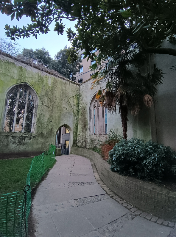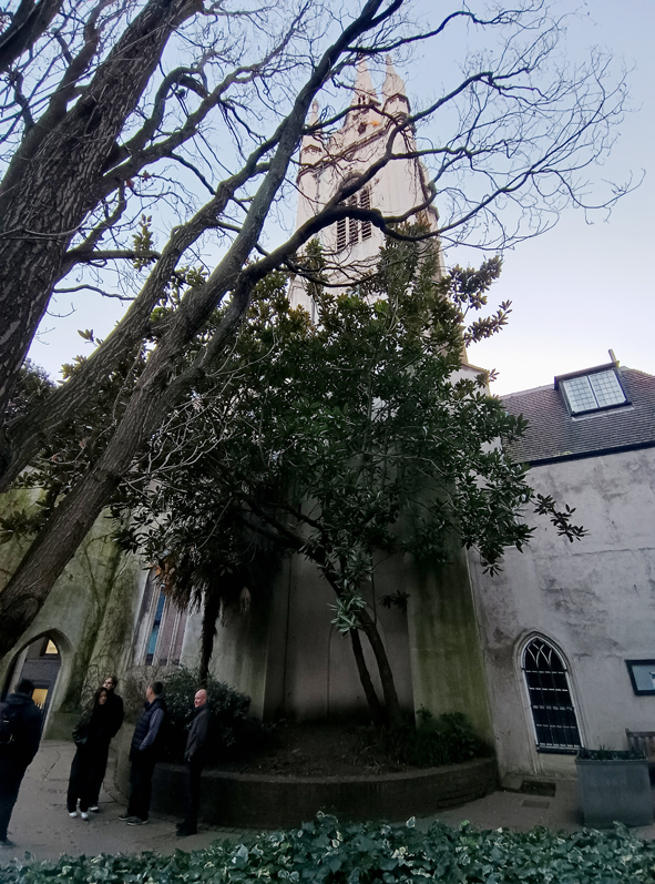 The final trek took us through St Dunstan in the East. The church was rebuilt after the Great Fire but suffered bomb damage during WW2 and the bell tower and some of the walls survived.. The decision was made not to rebuild and turn the church over to mother nature and create a garden. Spring hadn’t yet spring so it was looking a little sparce and not at its best. The squirrels didn’t seem to mind.