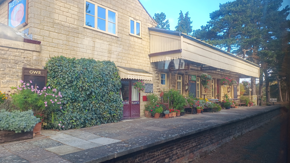 We hopped off the train at Cheltenham to see the engines switch positions. The station here is located at the far end of the Racecourse, and as this was Race Day, there were plenty of cars trying to get into the site. We hopped back on before it left and found different seats in another carriage We jumped off at Winchcombe to explore the site here – they were also running a BBQ for lunch so we planned to eat before we caught the next train.