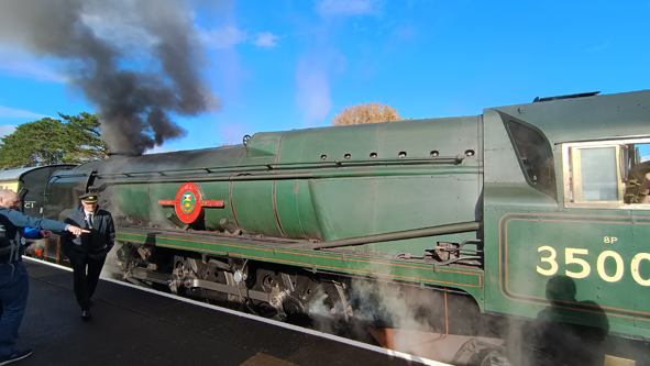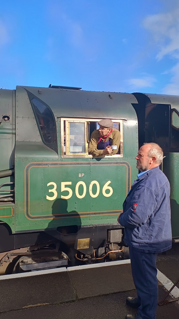 One of the engines running today was the SR Bulleid Merchant Navy No. 35006 โPeninsular & Oriental S.N. Coโ engine – its last weekend of service before it is withdrawn for its 10-year overhaul.