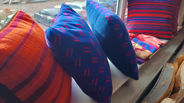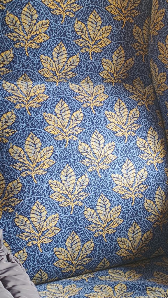 The station was old-time picturesque with the old waiting rooms converted into a teashop. Further down the platform, they had opened up the engine sheds where they were renovating two sets of carriages. The upholstery workshop where they renovated all the seats was also opened. The old seats were spring based and so old that when you sat on them you sank down into them. The renovation work stripped everything back to the bare bones. The springs were ditched in favour of layers of foam and all the maquette/fabric was based on old designs and produced by a mill in England. Each set of carriages would have a unique fabric. I really liked the Horse Chestnut design. A turquoise background with Horse Chestnut leaves in green.