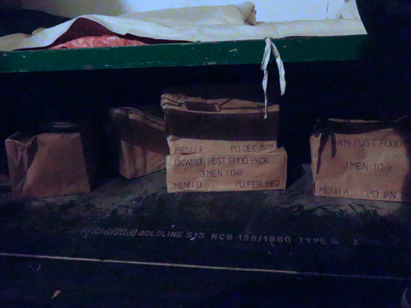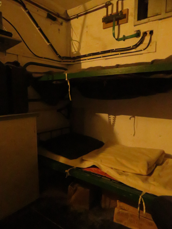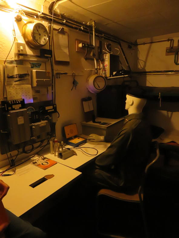 Once underground, the was very little space. At one end was a bunk bed, the space underneath the bed was used to store boxes of food rations – one box per day. There were six different menu options available!! The main focus was the desk with all the monitoring equipment. A beep sounded at regular intervals to indicate all was well above ground. The guide played the sounds of what would be sounded if an attack was incoming and once the all-clear was given.