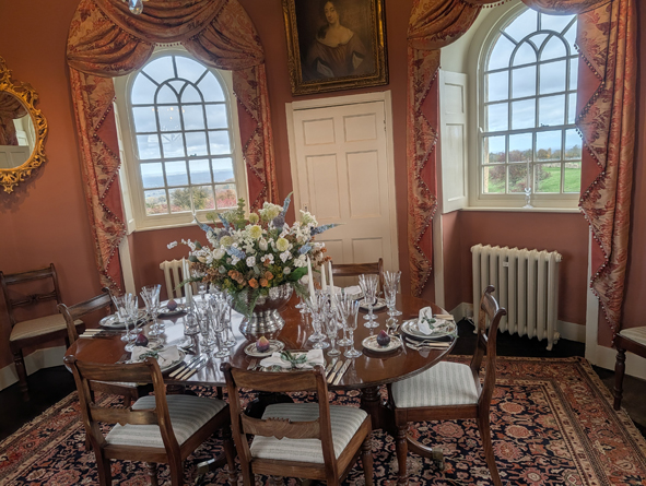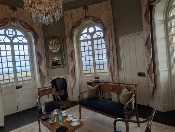 It’s a nice gentle climb up the tower. It was built as a folly and rooms on three levels. A short climb and you could view the different floors, each offering a glimpse into Georgian life. We were surprised to learn that the Tower was the brainchild of Capability Brown – the 18th Century landscape designer. It was designed for George William 6th Earl of Coventry with the help of renowned architect James Wyatt and completed in 1798. James Wyatt vision was for a โSaxon Towerโ and combined various architectural components ranging from turrets, battlements and gargoyles to balconies.