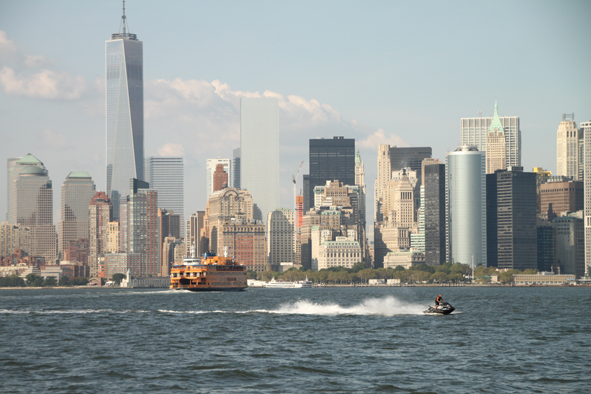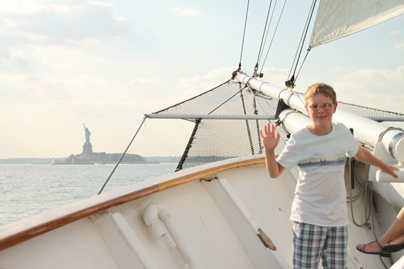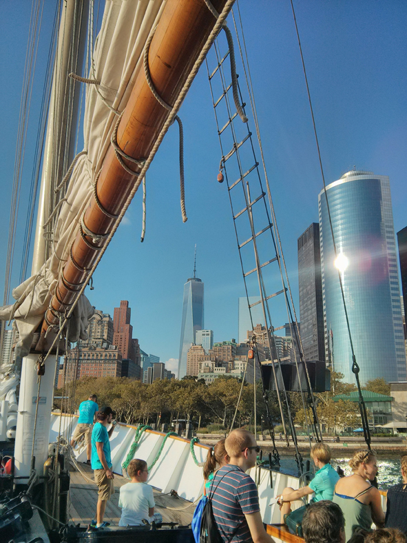 After realising the time, we caught the subway down to South Ferry ready for our clipper sail. At 4.30pm, the ship set sail and thankfully there was a little wind so we sailed towards the Brooklyn Bridge then headed around Governor’s Island before heading to the Statue of Liberty. It was still quite warm (in the 80’s) but the breeze was very welcome. We carried on around the island then headed towards Manhattan. Again some great photos of the Manhattan Skyline – no haze or fog!