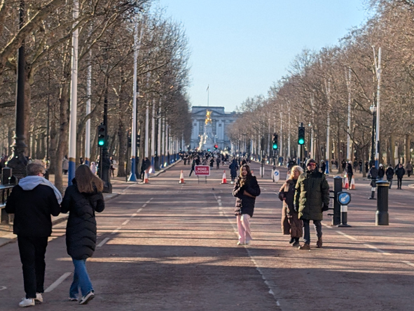 From Trafalgar Square, we headed off down The Mall – the road that takes you to Buckingham Palace. Admirality Arch is under renovation and under wraps at the moment. Whatever work they are doing is taking forever.