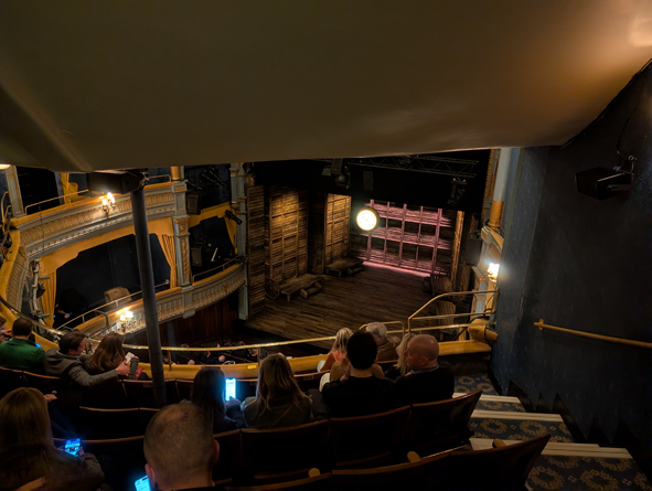 We had tickets at the back of the Royal Circle (the middle balcony). The leg room was non-existent. Jon was fine, but Callum and I struggled. From the way the seats were laid out, I couldn’t even stick my legs into the aisle.