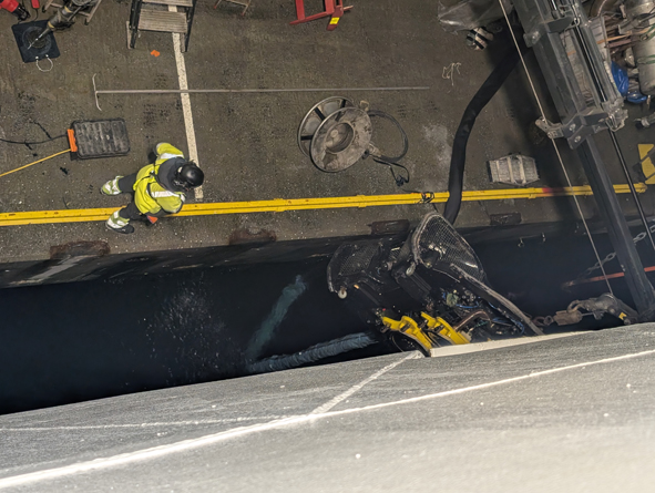 We quickly unpacked then headed back on deck to watch the sailaway from Bergen. Temperatures had noticeably dropped and it was cold outside. We sailed 30 mins late – not sure if waiting for passengers or other shipping traffic in the area. We entertained ourselves by watching what the dock workers were doing – this strange semi-submersible suddenly appeared out of the water and we wondered what it was for. Cleaning the hull, inspecting the ship (we’ll google the photo when we get a moment!).