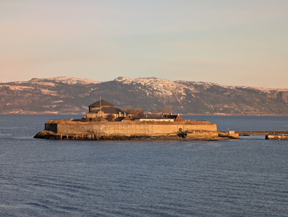 There was a “point of information” up on Deck 7 at 9.15am as we sailed into Trondheim – this means there is something interesting to see off the side of the ship so wrap up warm and bring your cameras! Just off Trondheim is Munkholmen – the islet has served as a place of execution, a monestry, a fortress, a prison and a World War II anti-aircraft gun station. Today, Munkholmen is a popular tourist attraction and recreation area.