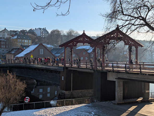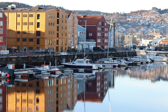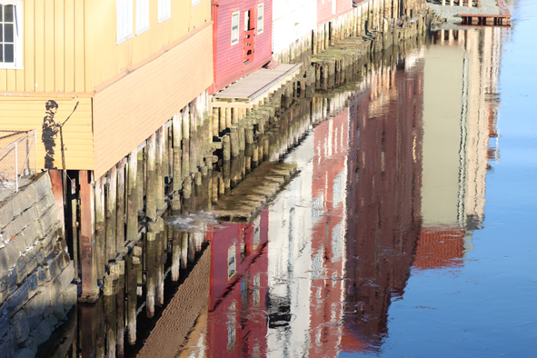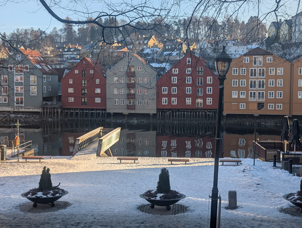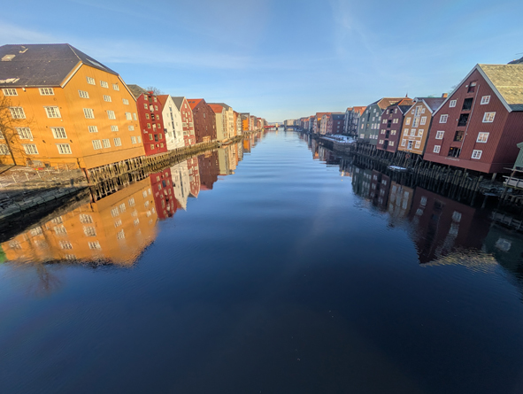 From the Cathedral, we headed to Gamle Bybro – The Old Town Bridge heading into the old town area. The River Nidelva was so still, it was near perfect conditions to capture the reflections of the buildings in the water. Whilst cold, the sun was shining brightly. From here, it was hot-footing it back to the ship. If we missed the ship it would be a very expensive taxi ride to Rørvik- the next port of call.