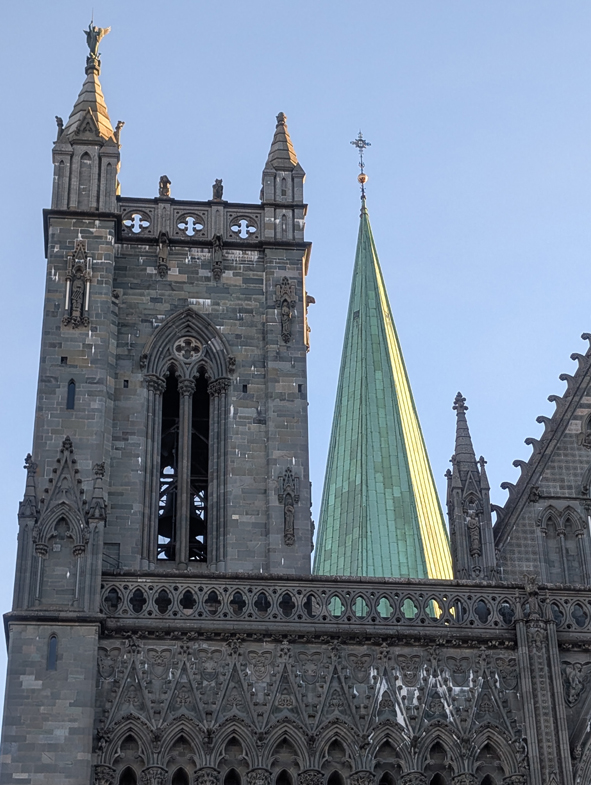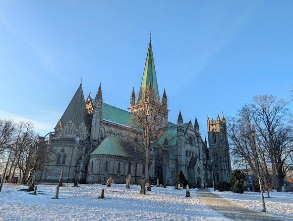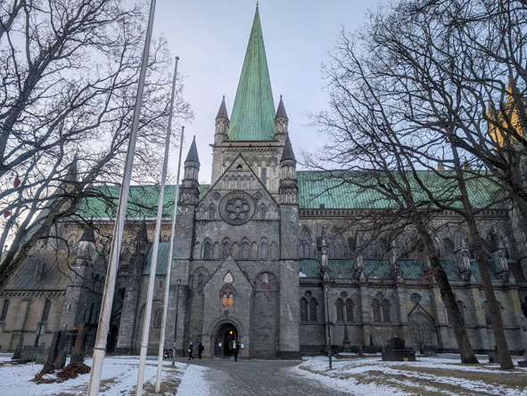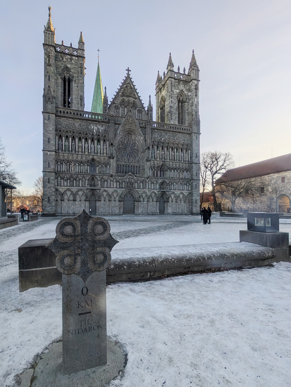 The Nidaros Cathedral is huge and very impressive. Nidaros is the old name for Trondheim – the city changed it’s name but the cathedral kept the name Nidaros. The are immediately in front of the cathedral was an ice rink – not intentionally! A few near slip-ups but just about survived intact.