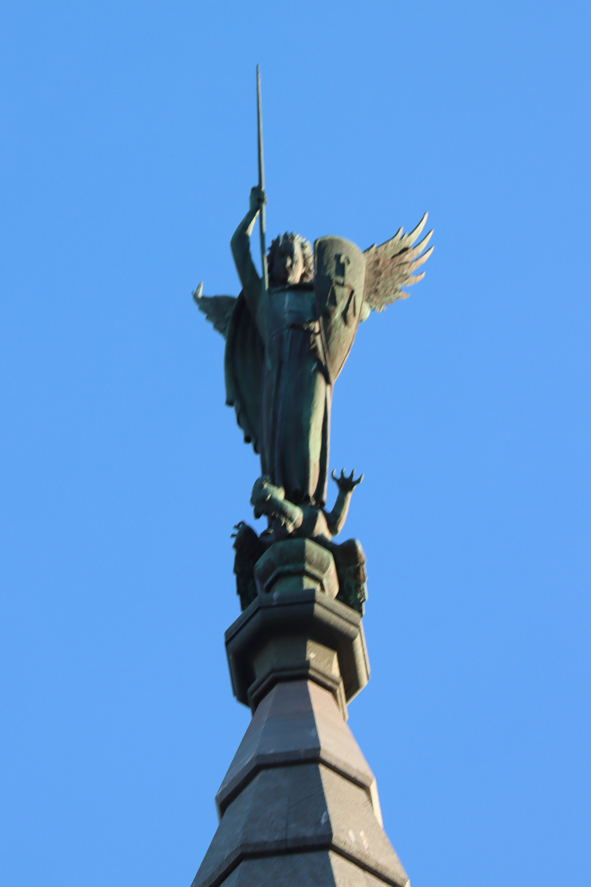 At the top of the left most spire was an angel, added fairly recently in 1963. The artist (apparently!) was a big fan on Bob Dylan so the angels face was modelled on him – no-one knew what an angels face looked like so why not!!