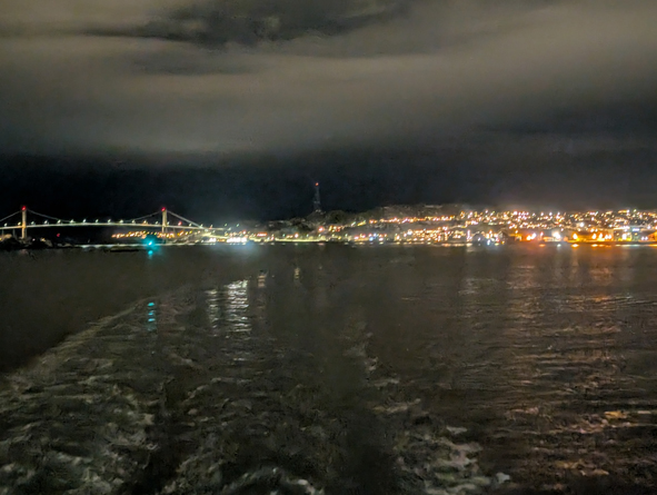 After dinner we headed down to the photo tips workshop then chilled in our cabin for a bit. We headed out on deck to see our arrival in Rørvik at 21.40pm. Our timing was spot on as we were on deck in time to see Havila Pollax head out and pass us by.