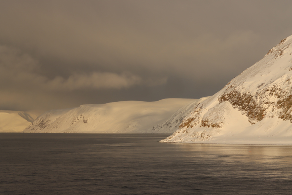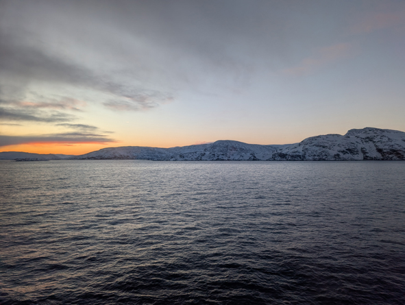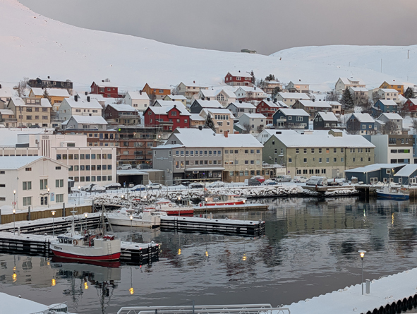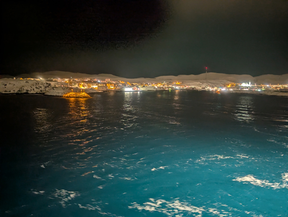 We were now sailing up the last stretch of Western Norway before we sailed along the north of Norway. We had crossed latitude 71°. In the early hours of the morning, we slept through the stops at Øksfjord and Hammerfest.
