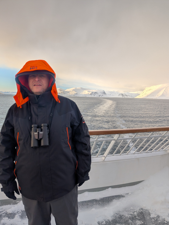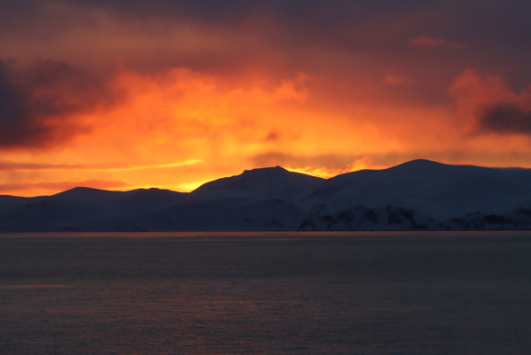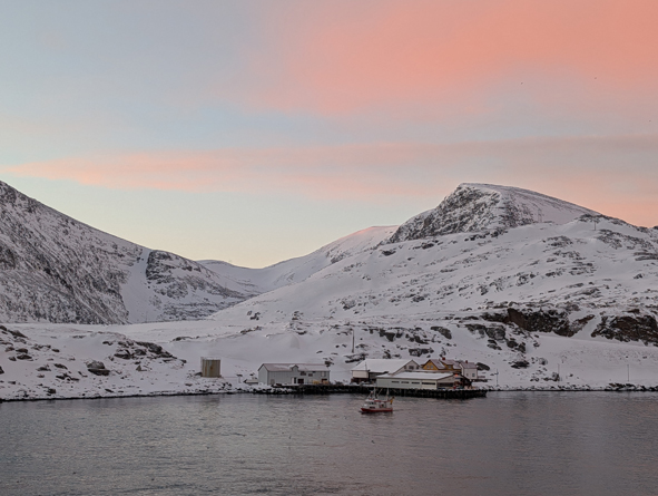 We had breakfasted and up on deck to watch the sail in to Havøysund and see the wonderful colours in the sky.