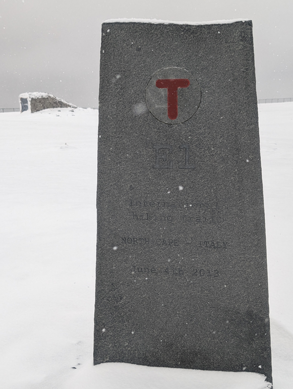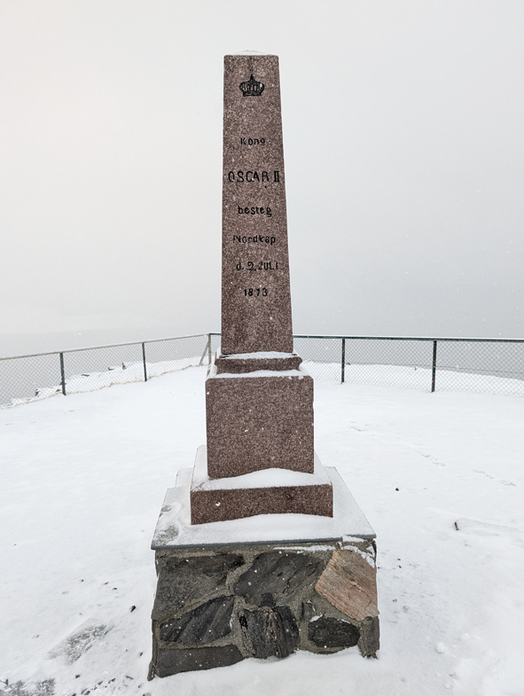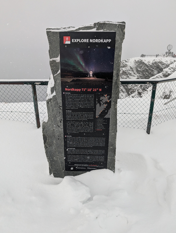 On arriving at North Point, there are several interesting markers. There were a lot of people taking photos around the globe marking the North Cape so we took our time walking across, seeing some of the other markers.