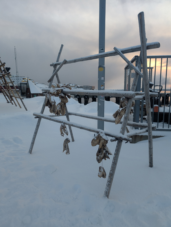 Near the car park, they had some racks to dry the Stokfish – a couple of fish were drying. They are hung for a couple of months on the rack, and can then last about 10 years!!! Must admit it didn’t look particularly appetising!