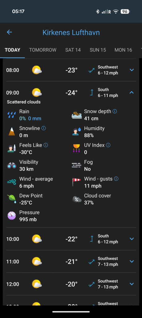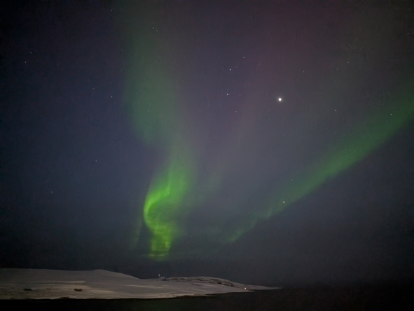 Just as we were leaving Vardo, the Northern Lights came out to play again. Not too bright but hopefully a taste of what’s to come this evening!