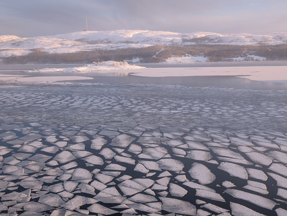 With the temperatures being so low, we had really layered up that morning and good barely move! Four layers on top plus jackets and two on the bottom with two layers of socks and hat/hood. Balaclavas were packed in our rucksack in case they would be needed as were our Yaktrax. The only issue with all the layers is you need to get outside pretty quickly as you overheat. Deck 5 beckoned so we could watch the sail in to Kirkenes. We loved the patterns the broken ice was making in the sea.