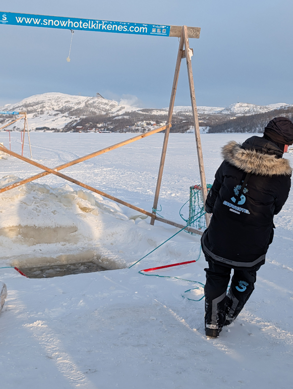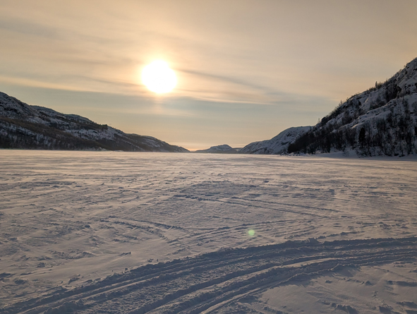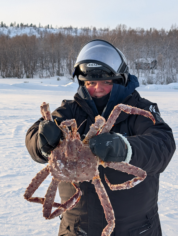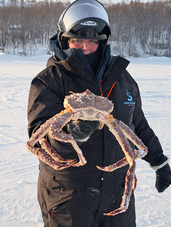 We had to slow down as we passed the group that were doing husky dog sledding so we didn’t spook them. We were then heading out onto the frozen fjords and towards the crab fishing sites. The ice was a minimum of 30cms thick for people to taking groups on there.