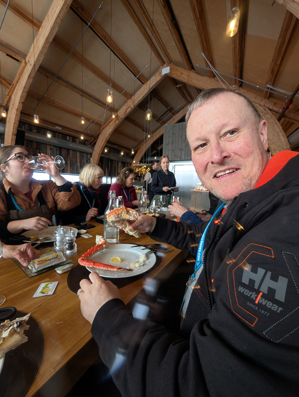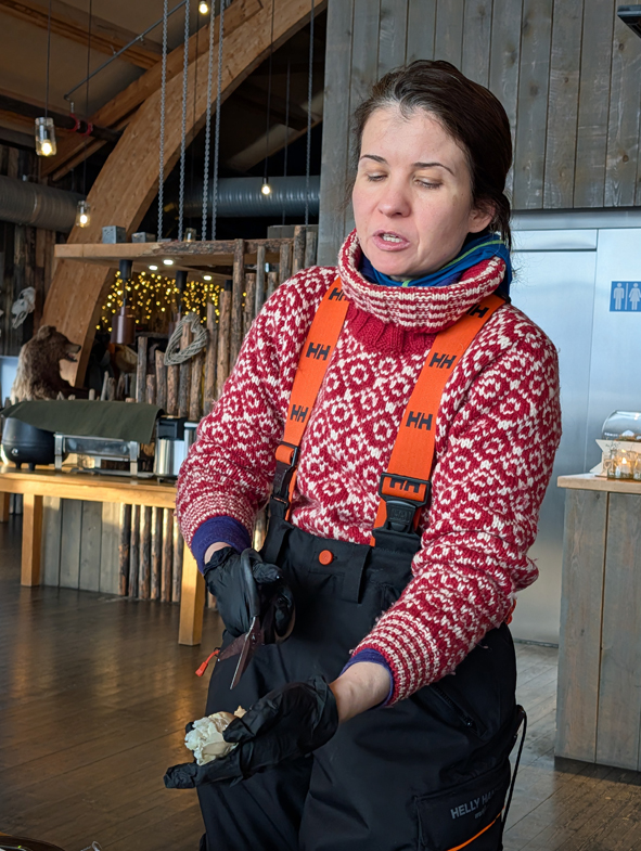 Now the tricky part again – loading ourselves back up on the sleds to go back to the hotel. Once back, we needed to hand back the overalls, helmet, gloves and balaclavas and we were then taken to the restaurant. Between the dressing room and the dining table, we’d gained an extra three dining companions. One guy was paranoid it was him – but Patricia checked and he was one of the expected guests. It did mean that not all guests that paid for the excursion got a claw and a leg – they received two legs instead.