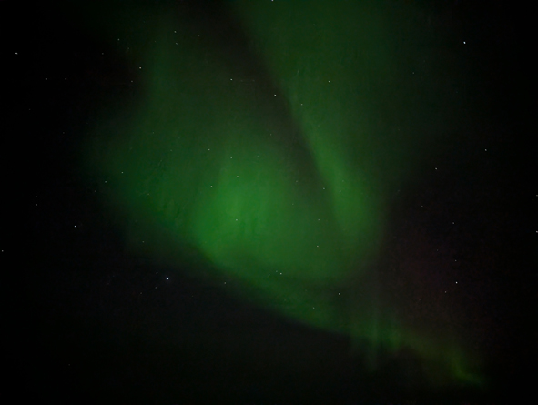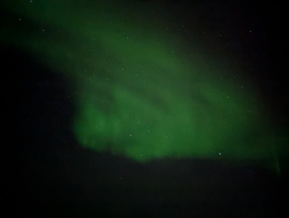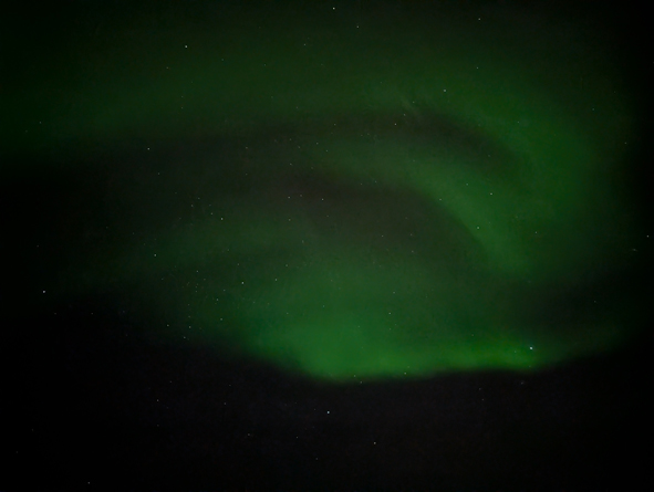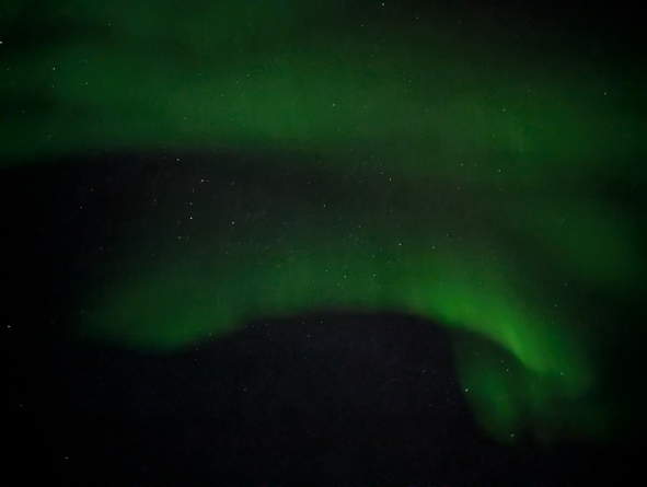 This was the largest swayth of lights we’d seen, visible from the front, port and starboard sides. One section was quite bright but rest was fairly muted. I was really starting to feel the cold so decided to call it a night and head to bed.