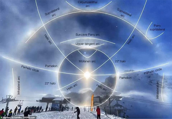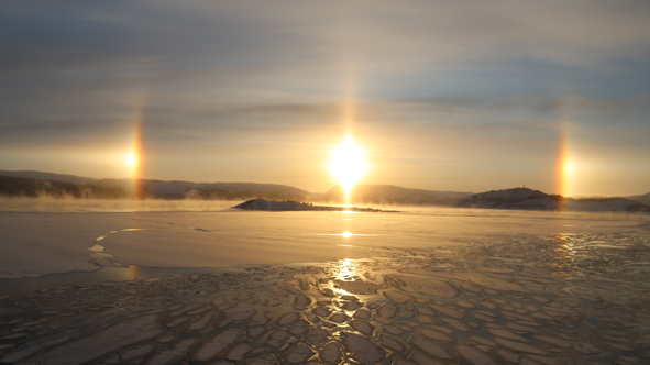 There were two vertical rainbows in the skies (there was a third but this was hidden by the ship). It was a rare phenomena only seen in the Arctic at certain times. Our guide on the bus to take us to the Snow Hotel said it was the Norwegian sun, the Finnish sun and the Russian sun as all these borders are close to here.