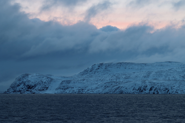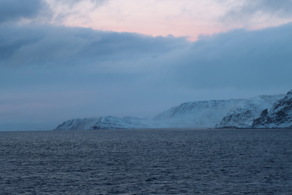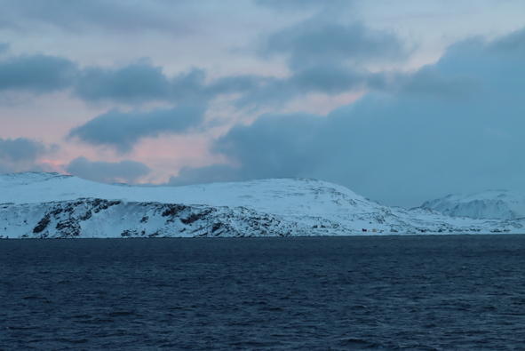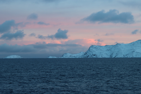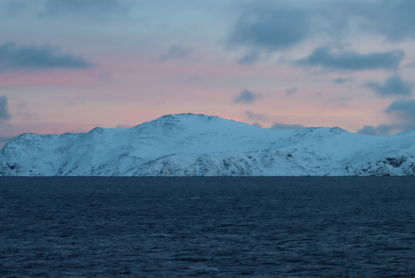 We’d already stopped at three ports by the time we woke up this morning: Mehamn, Kjøllefjord and Honningsvåg. We popped up on deck to watch the sail into Havøysund. It was a stunning sail-in especially when the sun peeked out from behind the clouds throwing down some wonderful pinky-blue shades.