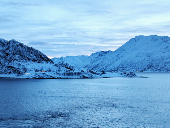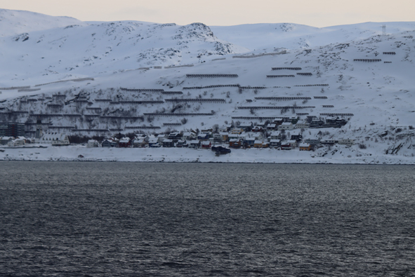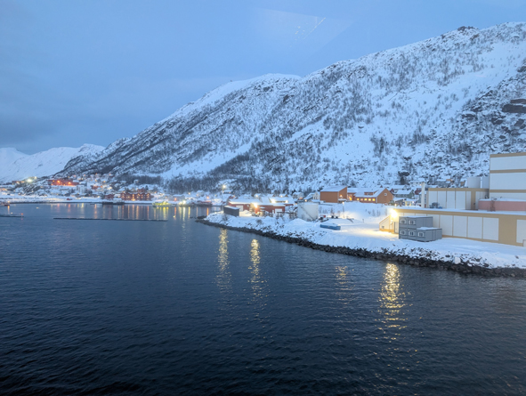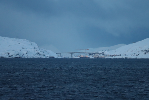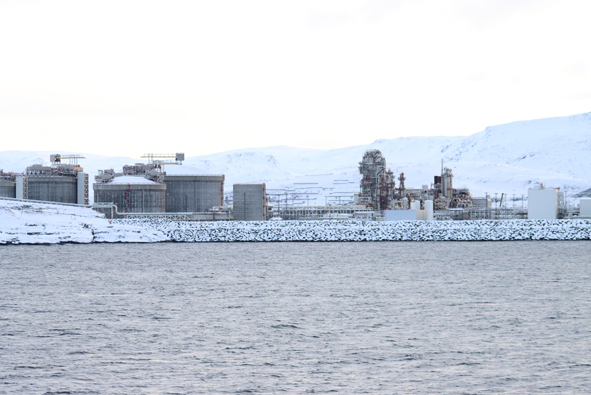 We were out on deck for the today’s point of interest – the very “picturesque” Milk Island, located close to Hammerfest. The expedition team were being sarcastic when saying it was picturesque … it’s now the home of Norway’s LNG processing plant. It only opened in 2007 and the profits covered the construction costs by the end of 2015. Most of the gas is exported to France, Spain and Germany with a ship arriving every five days on average.