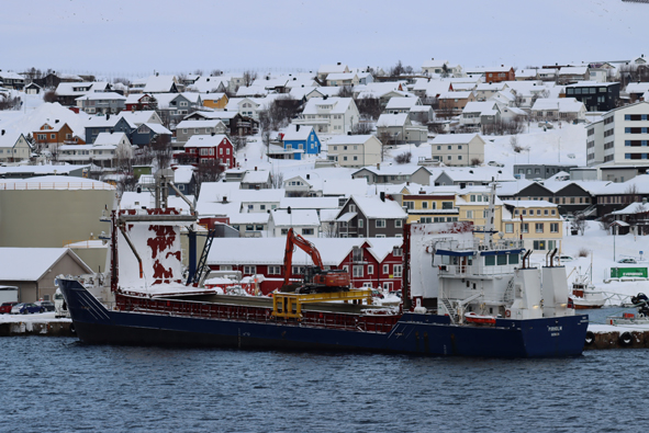 Whilst in Kysten, we stopped at Skervøy for 15 minutes. We had a great view of our arrival and departure from our window seat – in the warm – which provided a little distraction from the food.