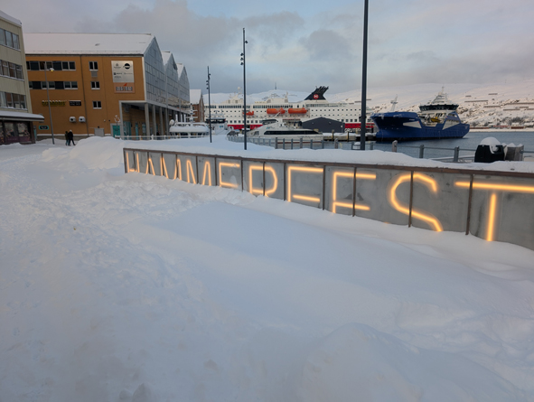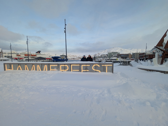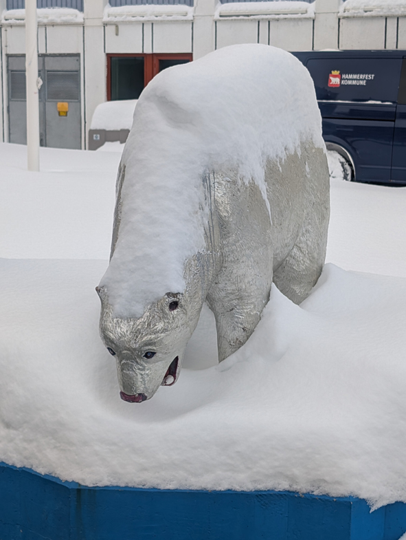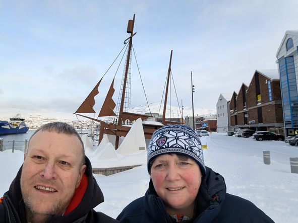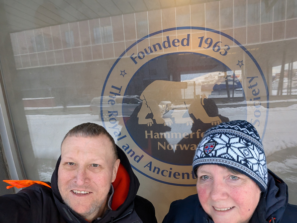 We’ve two short stops where we can get off today – the first being Hammerfest. We arrived late into port so we only had 1 hour 15 minutes and our mission today was to become members of The Royal and Ancient Polar Bear Society. You cannot sign up remotely, you have to go the Society HQ in Hammerfest and sign up here. We are now proud to be members 287781 and 287782. We have a certificate and polar bear pin badge as part of the membership!