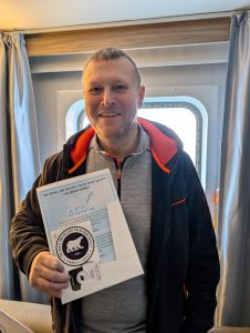 Time to head back to the cabin and get showered and dressed for our 3 course meal in Kysten, the speciality restaurant onboard. This was our prize for winning the quiz night. We say got dressed up – everything onboard is very casual, so I put on a smart jumper and Jon a polo shirt!