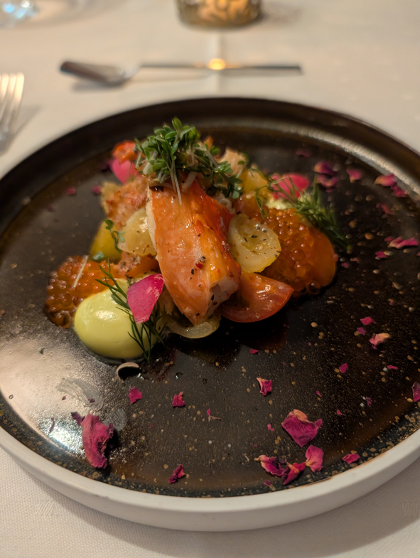All the food on the menu sounded delicious and we struggled to decide. Jon quickly decided on the Butter fried Snow Crab leaving me to umm and ahh between the Beef Carpaccio and the Raw Prawn and Sea Urchin starter. I decided on the Prawn and Sea Urchin however, fate would intervene! When the starters were brought over, I received Carpacchio. Christoffer was mortified and incredibly apologetic – but it looked amazing and was more than happy with the switch (especially as I was struggling to decide in the first place). It tasted amazing!