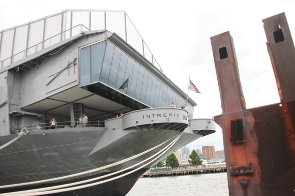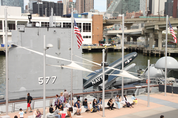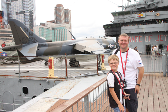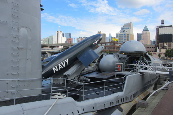 From the Empire State Building, we then walked across to the Intrepid Museum at the Hudson River end of 42nd Street (after stopping at Old Navy to stock up on trainer socks!!). Intrepid was a WW2 aircraft carrier that had been converted into a museum housing aeroplanes, helicopters, a space shuttle and concorde. USS Growler (a cold war submarine) was also moored alongside the dock. Overlooking Intrepid was the NCL Cruise Ship – the Norwegian Gem.
