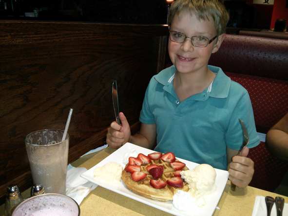 We dozed for a little while longer before getting up and heading out. We found a place called Jimmy’s for breakfast. Callum wanted waffles, Jon the breakfast wrap and I decided to enter the spirit of things and go for the pancakes with bacon (and yes, I did have maple syrup!). Portions were huge and the pancakes defeated me!