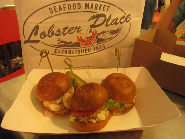 Lunchtime and we’d read about The Lobster Place in the guidebooks. This was more than just a fish shop. There was more shellfish in one place that we’d ever seen. Every type of fish for sale, smoked salmon with all sorts of coatings, sandwiches … and what we’d come in search of, the Lobster Rolls.