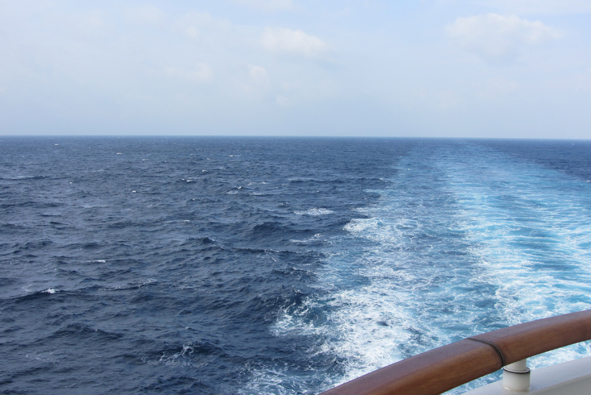 This morning the sun was shining from the word go – no fog or mist in sight. Everyone was heading for the sun decks! Azura had an awful lot of sea to cover in two days so we were travelling at 21.9 knots (must be nearly full speed for this size of ship).