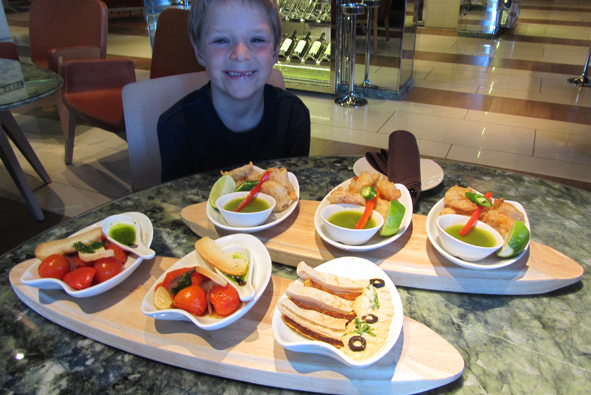 Callum went to Kids Club, whilst Jon and I opted for the wine tasting. The wines were the same as the last cruise, but the host, Al, was brilliant. Very much in the Olly Smith style of presenting and his tales of how he became the Sommelier onboard were brilliant. We tasted two whites, The Albarino and the FMC and two reds, the Planeta and the Chateau Latour (the most expensive wine onboard at £12/glass). The FMC was still my favourite.