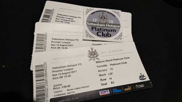 Opening weekend of the new Premiership season and we had tickets for Newcastle’s first home match. It would be a tough one – they were up against Tottenham Hotspur and Harry Kane! Callum was very excited!