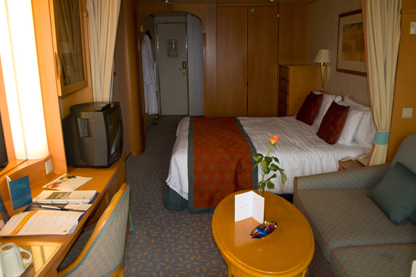 There was a lengthy but fast moving queue at Southampton. First moan logged after 5 minutes (you wouldn’t get this [the queuing] with Celebrity!) and by one o’clock we’d boarded (via the staff security entrance) so we avoided the photographers. Before we knew it, we were on board and having lunch in the Orangery.