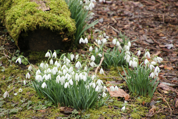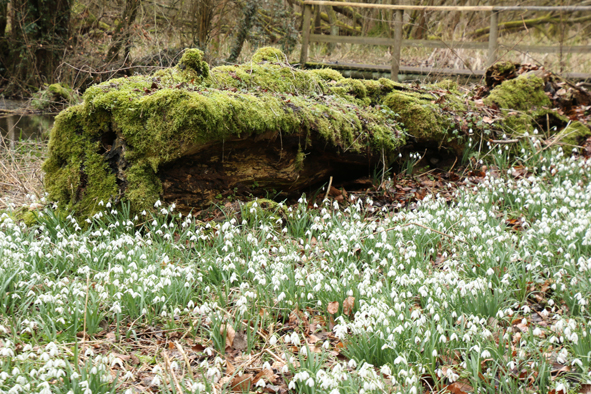 We walked from the house to the old bridge, passing patches of snowdrops and aconites. You cross the bridge at the end and you are in the main display. It’s pretty much a circular walk with the centerpiece fenced off and polite signs asking you to stick to the paths so you don’t step on the bulbs. Even though we thought we were quite early in the season, quite a lot of snow drops were passed their best but it is still an impressive display and well worth a visit.