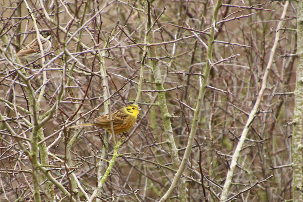 We ended up at a large hide overlooking the reservoirs and had the place to ourselves. A book of sightings showed the people in just before us had spotted herons, reed buntings and yellowhammers, so we sat and waited. Jon spotted the herons through is binoculars at the other side of the reservoir… and the reed bunting were in abundance, probably something to do with the seed that been thrown onto the path. Our patience did eventually pay off and we also spotted the yellowhammers.