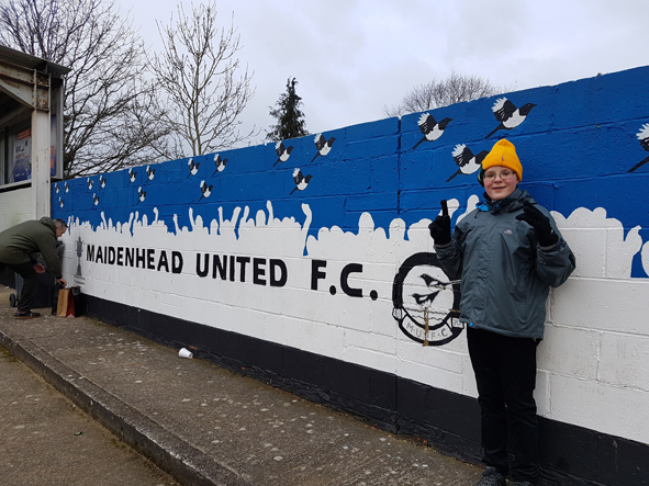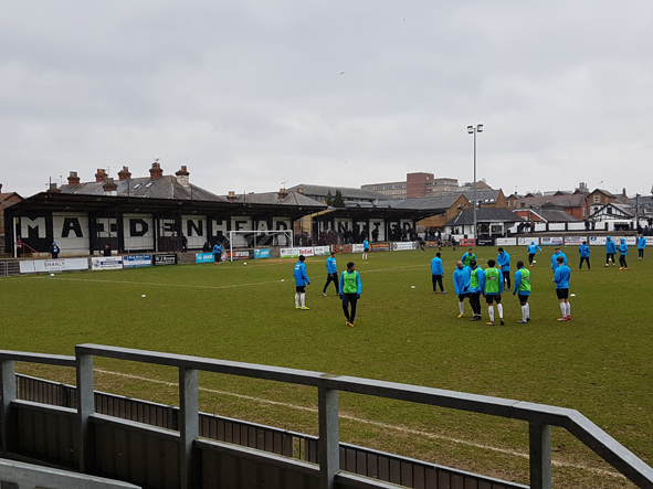 We watched the first half of the match from the stands then moved to watch the second half from the terrace behind the Maidenhead goal.
