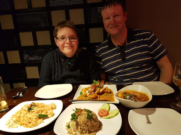 We passed the bar – Stripes – on the way out and headed back to the station and caught the train back to Reading. We decided to see if Thai Corner had a table free for this evening. We were reasonably early, so we were hopeful. Luckily, we arrived just after opening and there were a couple of tables free. Have to say, the food was really lovely – one of the nicest Thai meals we’ve had so will probably be back at some point. As we headed back to the station, the snow started to come down a little heavier, but not settling on the roads. If there is snow overnight, then there’s a real risk the Reading Half Marathon will be cancelled in the morning.
