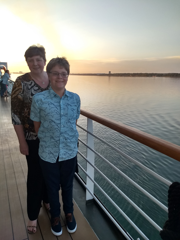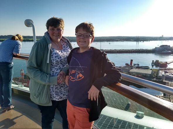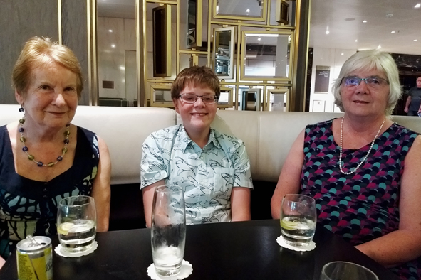 Once the batch of green card holders had been checked in, they raced through the rest of the numbers until we were called. From check-in to boarding took 15 minutes and we set foot on Britannia at 2.30pm. Mum and Ann were waiting for us in The Glass House … their glasses long since finished.