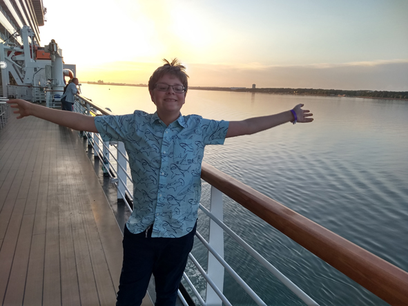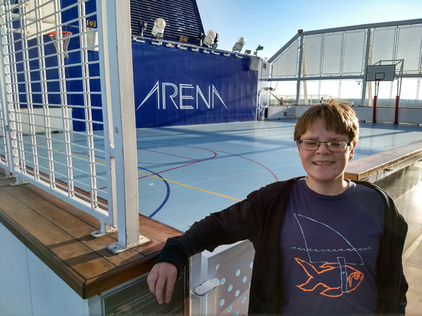 A quick welcome aboard drink and then we stopped by our cabin to find our suitcases had arrived. These were left in the cabin along with our hand luggage as we went to register Callum in Kids Club. There were 164 kids aged between 9-12 on board but a maximum of 67 would be allowed in Scubas at anyone time. We hadn’t eaten since breakfast so the next stop was the buffet. Chow mein, salad and chilli con carne for Callum! Then a quick explore around the ship.